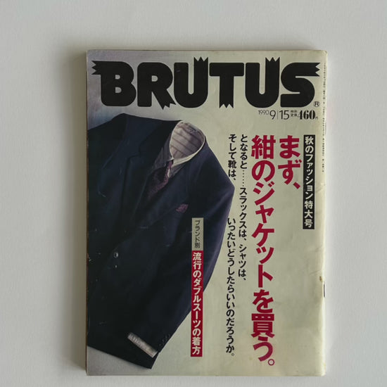 BRUTUS Issue 234, published in 1990, dedicated to autumn menswear with a focus on the navy jacket and its essential role in the season’s wardrobe.